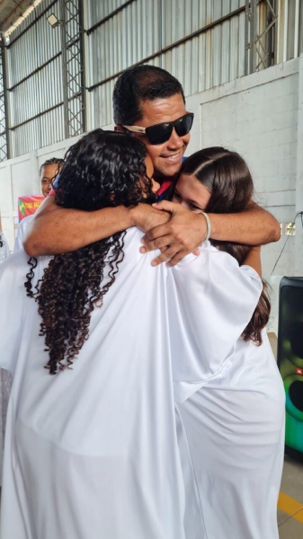 Após alimentarmos o espírito, compartilhamos uma ceia deliciosa, celebrando a mesa farta e a amizade que nos une. E, claro, a alegria ficou completa com a chegada do Papai Noel!