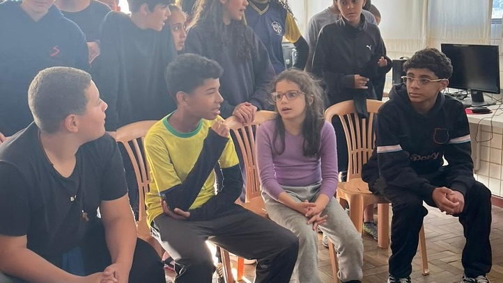 Dia 22 de outubro - Dia de Projeto de Extensão, as turmas participaram de uma experiência deliciosa e cheia de aprendizado! As crianças e adolescentes das turmas Paz e Solidariedade experimentaram suco natural e suco industrial com os olhos vendados e tentaram adivinhar qual era cada um - uma dinâmica divertida e educativa sobre sabores e escolhas saudáveis. Já as turmas Alegria e Gratidão participaram de uma atividade com cartinhas e perguntas sobre alimentação, estimulando a reflexão e o conhecimento. Para finalizar com chave de ouro, saborearam um bolo nutritivo preparado com muito carinho pelos acadêmicos de Nutrição.